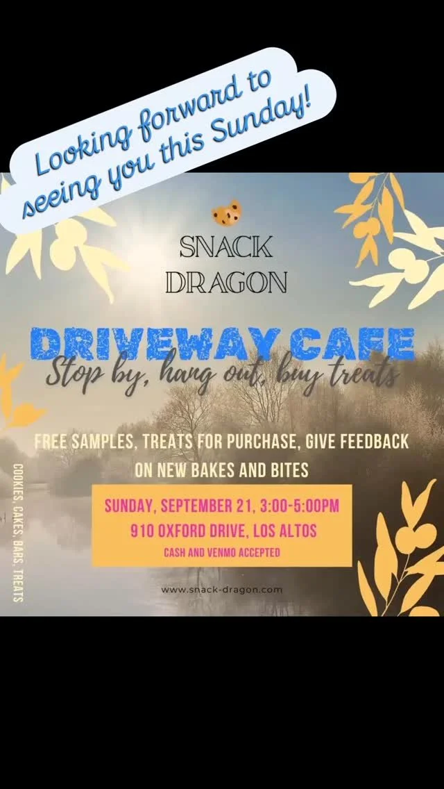 Started during the pandemic, but envisioned long before, Snack Dragon is the result of an insatiable sweet tooth, a desire to tinker in the kitchen, and a family who could not eat all the creations. We bake small batch, hand-crafted sweet eats, available during monthly sales, for limited delivery on the Peninsula in the Bay Area.